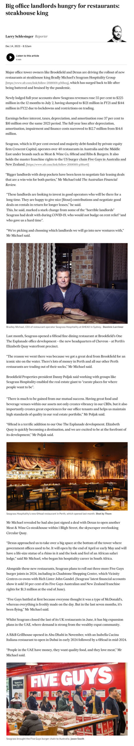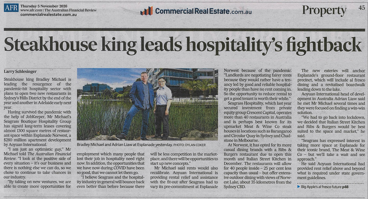 AFR: Big office landlords hungry for restaurants: steakhouse king