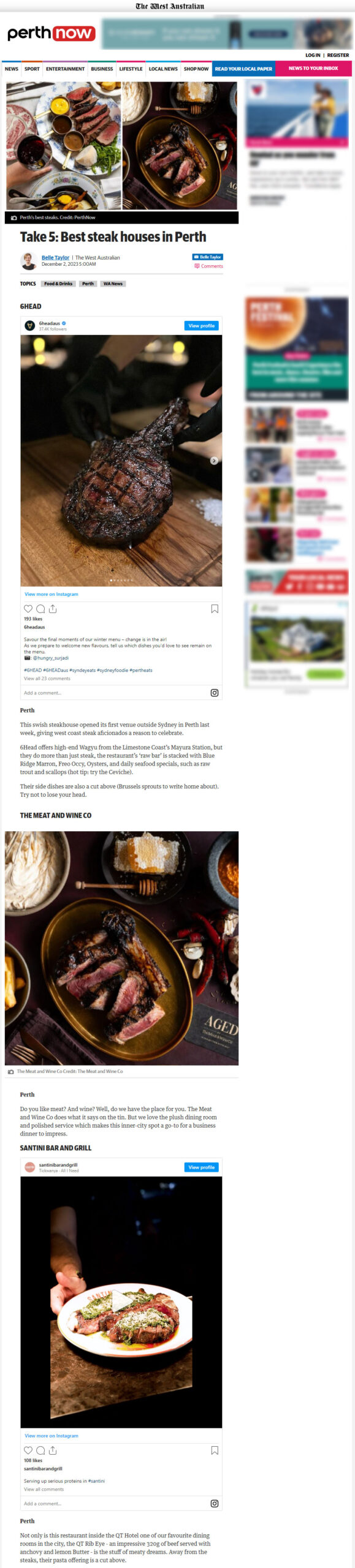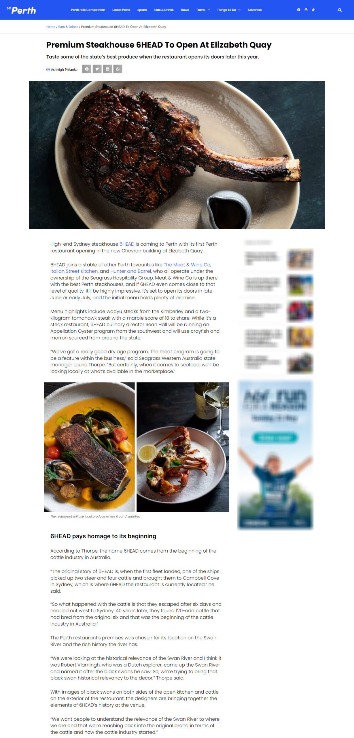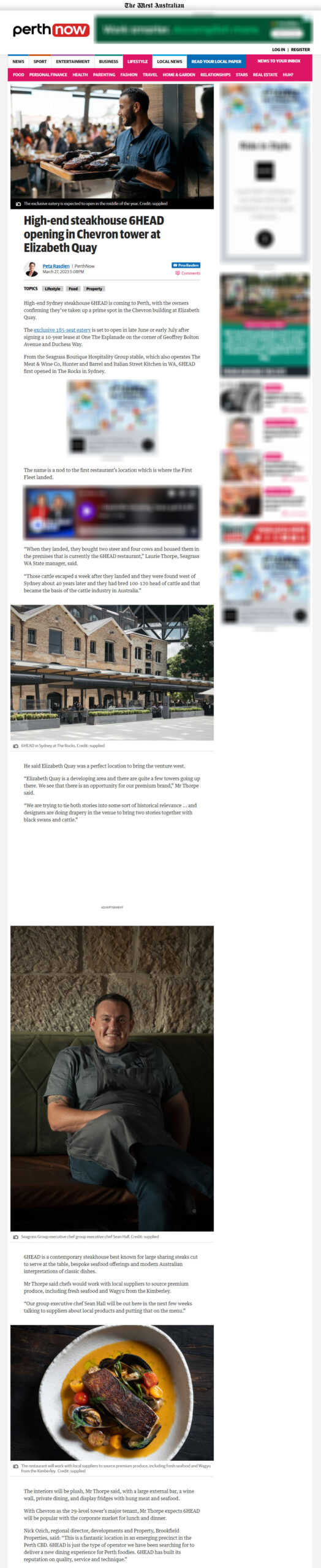 Perth Now - High-end steakhouse 6HEAD opening in Chevron tower at Elizabeth Quay