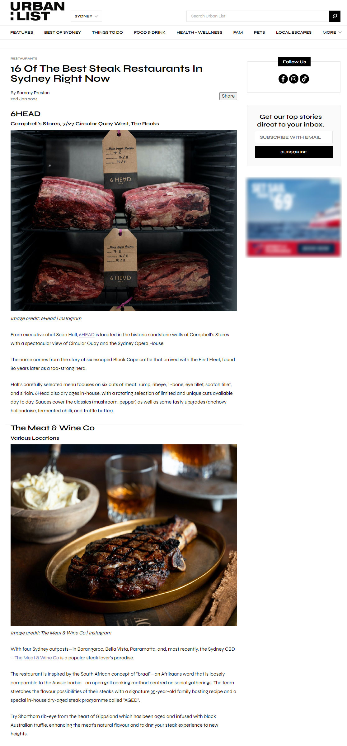 UrbanList - 6 Head Is Sydney’s New Sustainably-Centred Steak Emporium