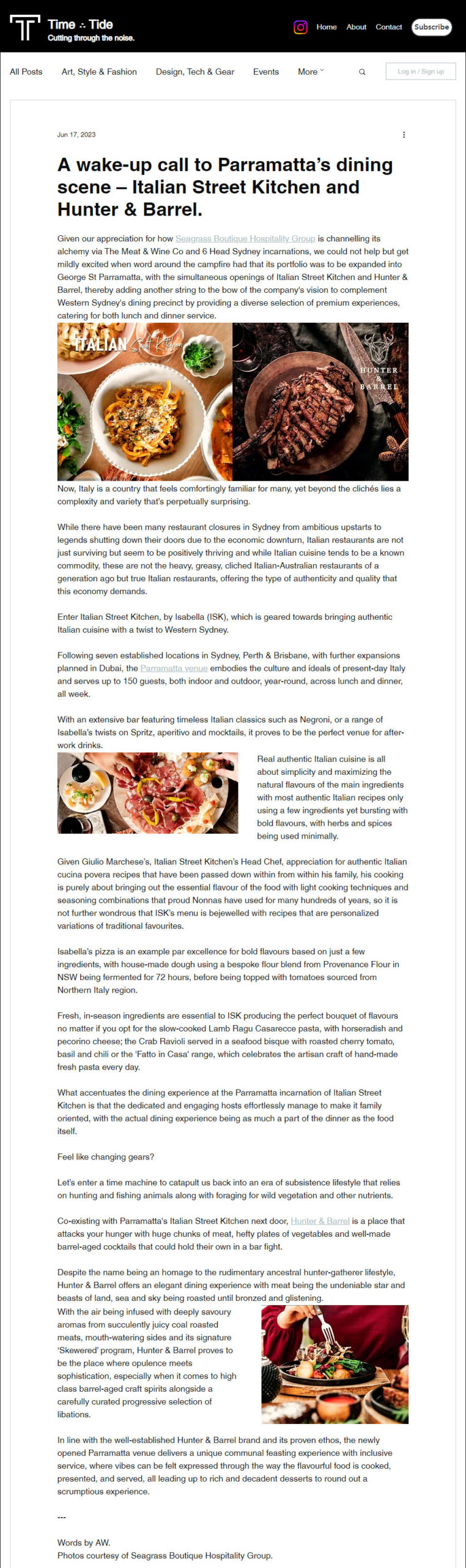 Time + Tide: Parramatta's Dining Scene, ISK and H&B